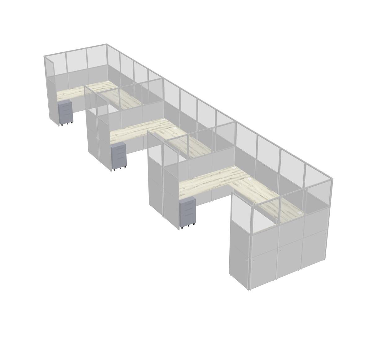 Système De Panneaux En U Heinne Holz Pour 3 Personnes + Tiroirs Mobiles En Métal Pour 3 Utilisateur(s)