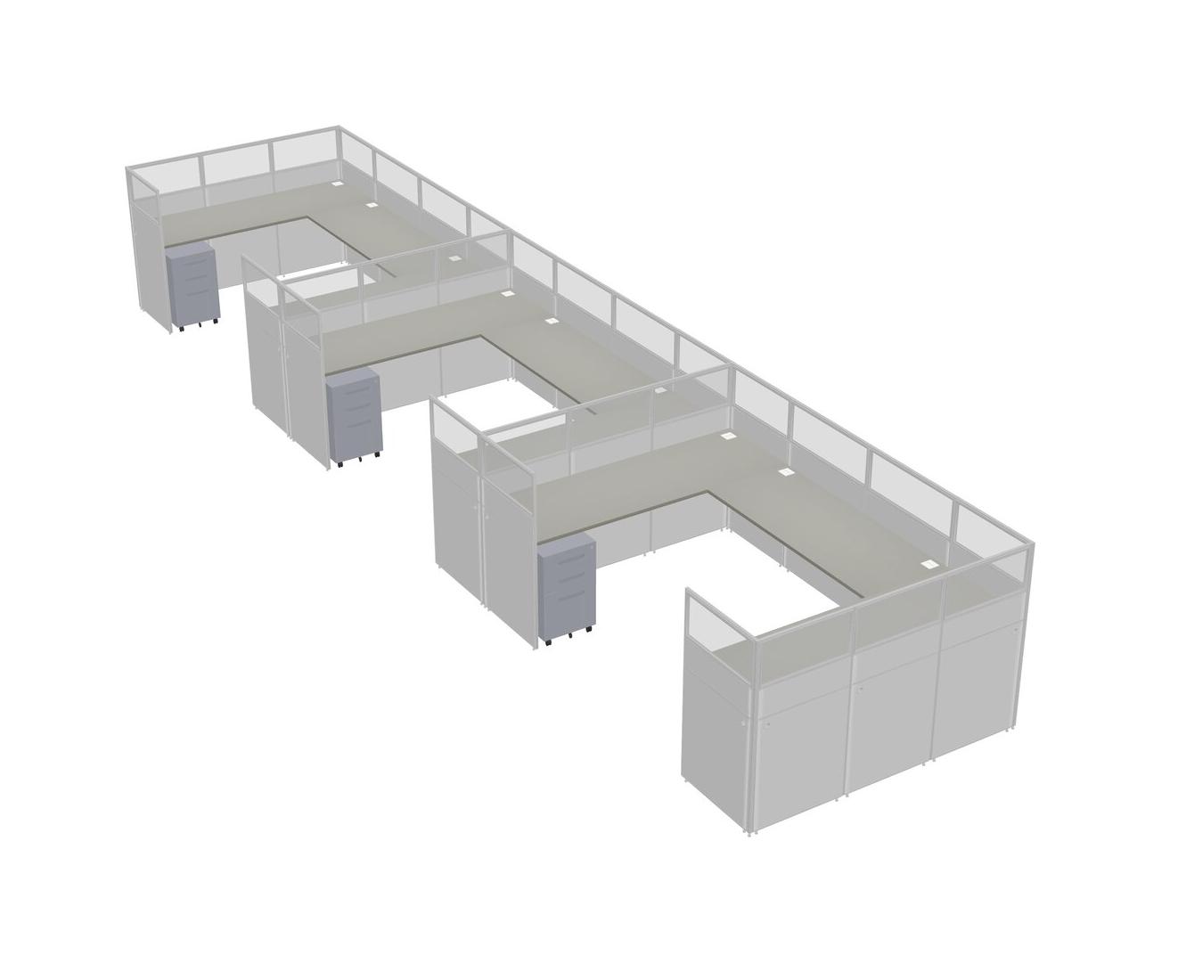 Système De Panneaux En U Grey Shadows Pour 3 Personnes + Tiroirs Mobiles En Métal Pour 3 Utilisateur(s)