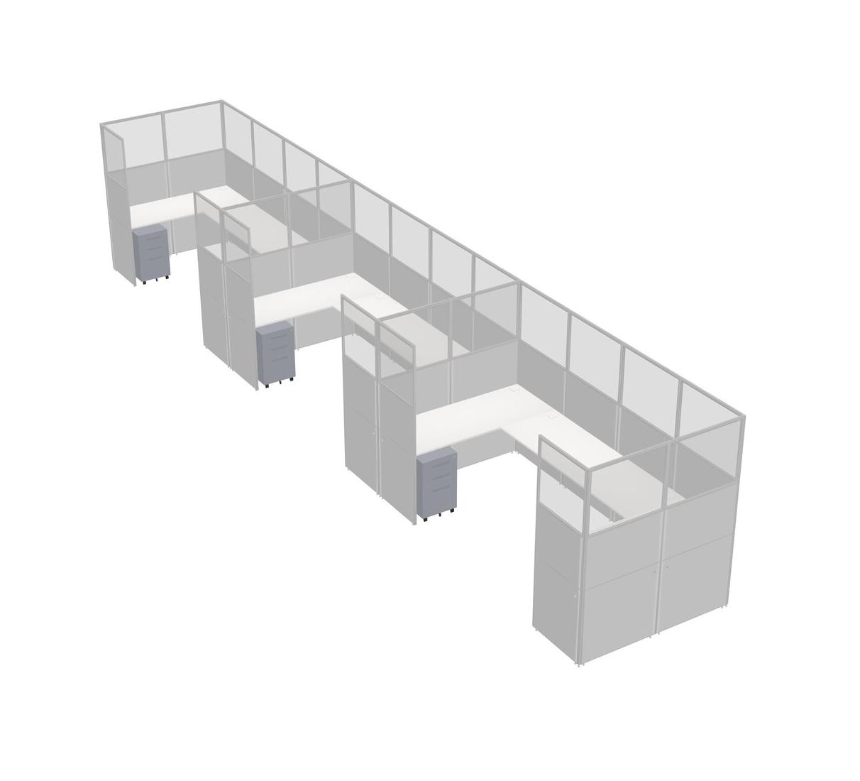 Système De Panneaux En U Blanc Pour 3 Personnes + Tiroirs Mobiles En Métal Pour 3 Utilisateur(s)
