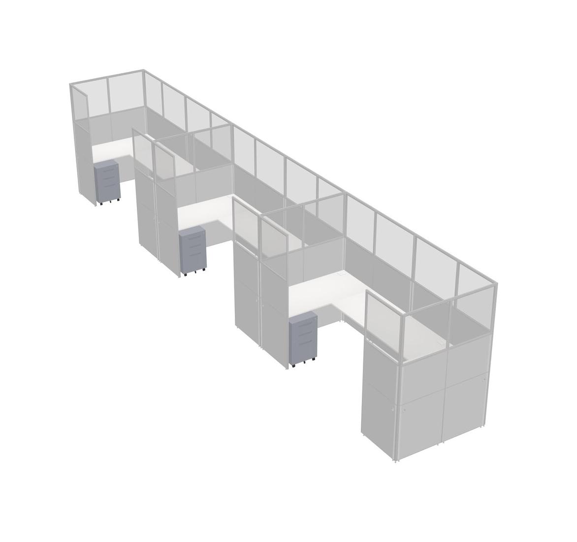 Système De Panneaux En U Blanc Pour 3 Personnes + Tiroirs Mobiles En Métal Pour 3 Utilisateur(s)