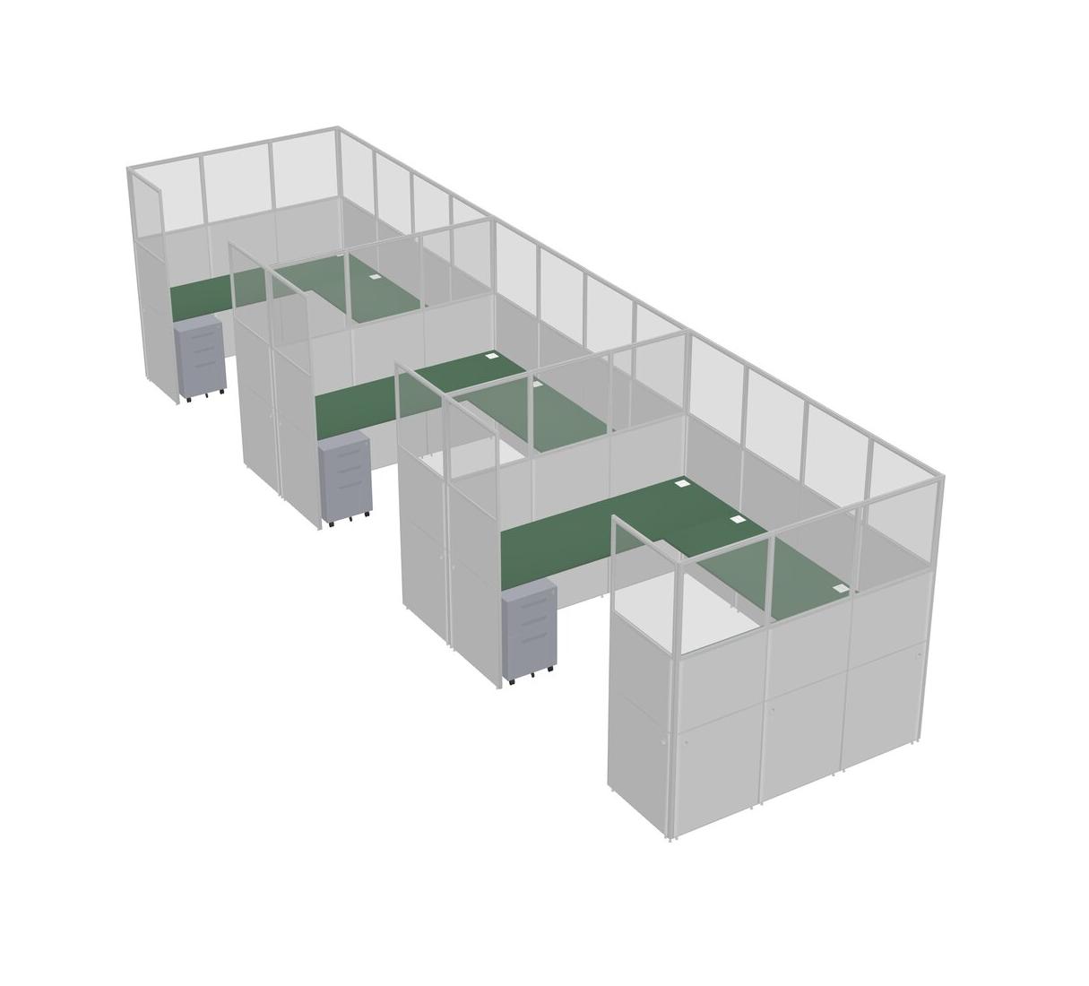 Système De Panneaux En U Vert Pour 3 Personnes + Tiroirs Mobiles En Métal Pour 3 Utilisateur(s)