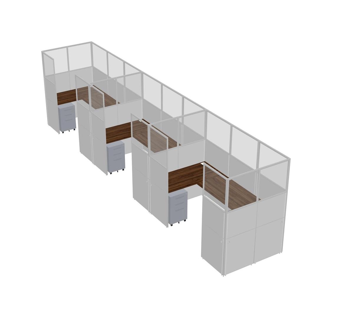 Système De Panneaux En U En Noyer Columbia Pour 3 Personnes + Tiroirs Mobiles En Métal Pour 3 Utilisateur(s)