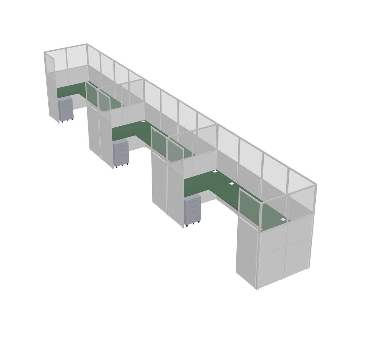 Système De Panneaux En U Vert Pour 3 Personnes + Tiroirs Mobiles En Métal Pour 3 Utilisateur(s)