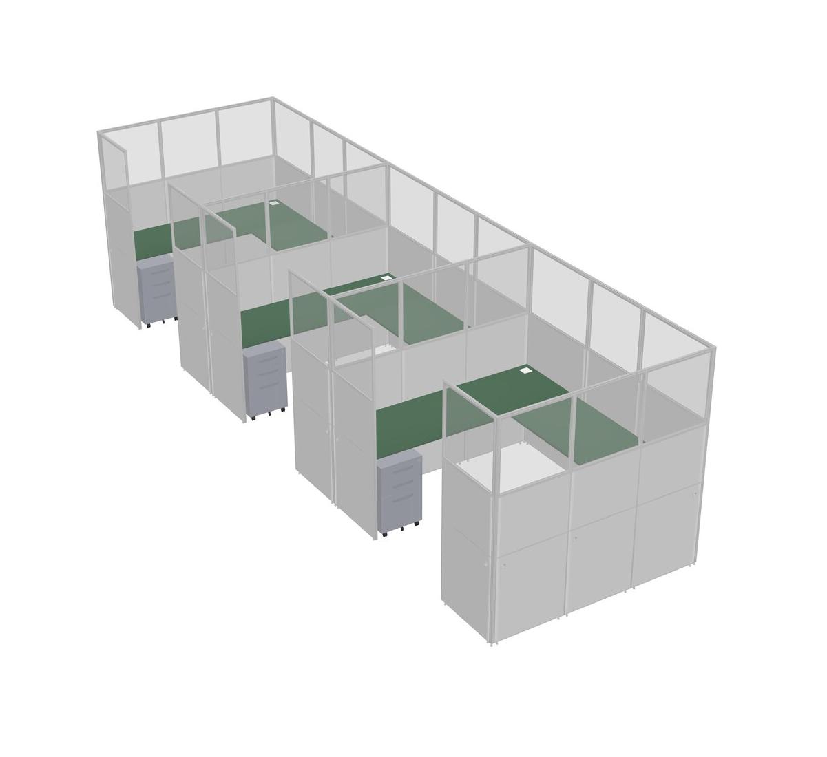 Système De Panneaux En U Vert Pour 3 Personnes + Tiroirs Mobiles En Métal Pour 3 Utilisateur(s)