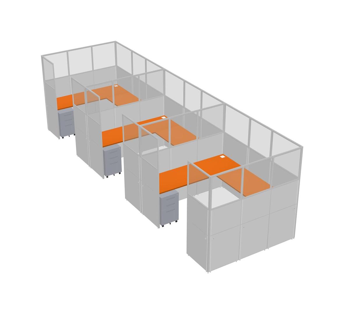 Système De Panneaux En U Orange Pour 3 Personnes + Tiroirs Mobiles En Métal Pour 3 Utilisateur(s)