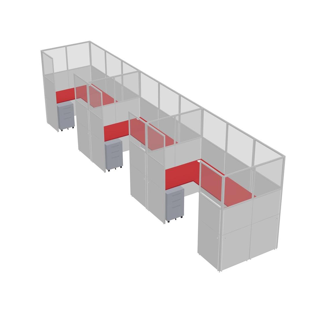 Système De Panneaux En U Prism Red Pour 3 Personnes + Tiroirs Mobiles En Métal Pour 3 Utilisateur(s)