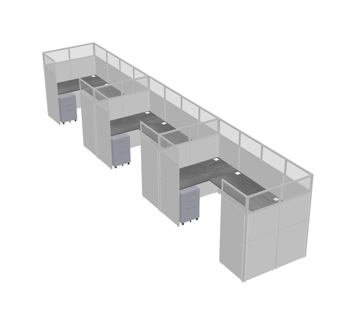 Système De Panneaux En U Gris Pour 3 Personnes + Tiroirs Mobiles En Métal Pour 3 Utilisateur(s)