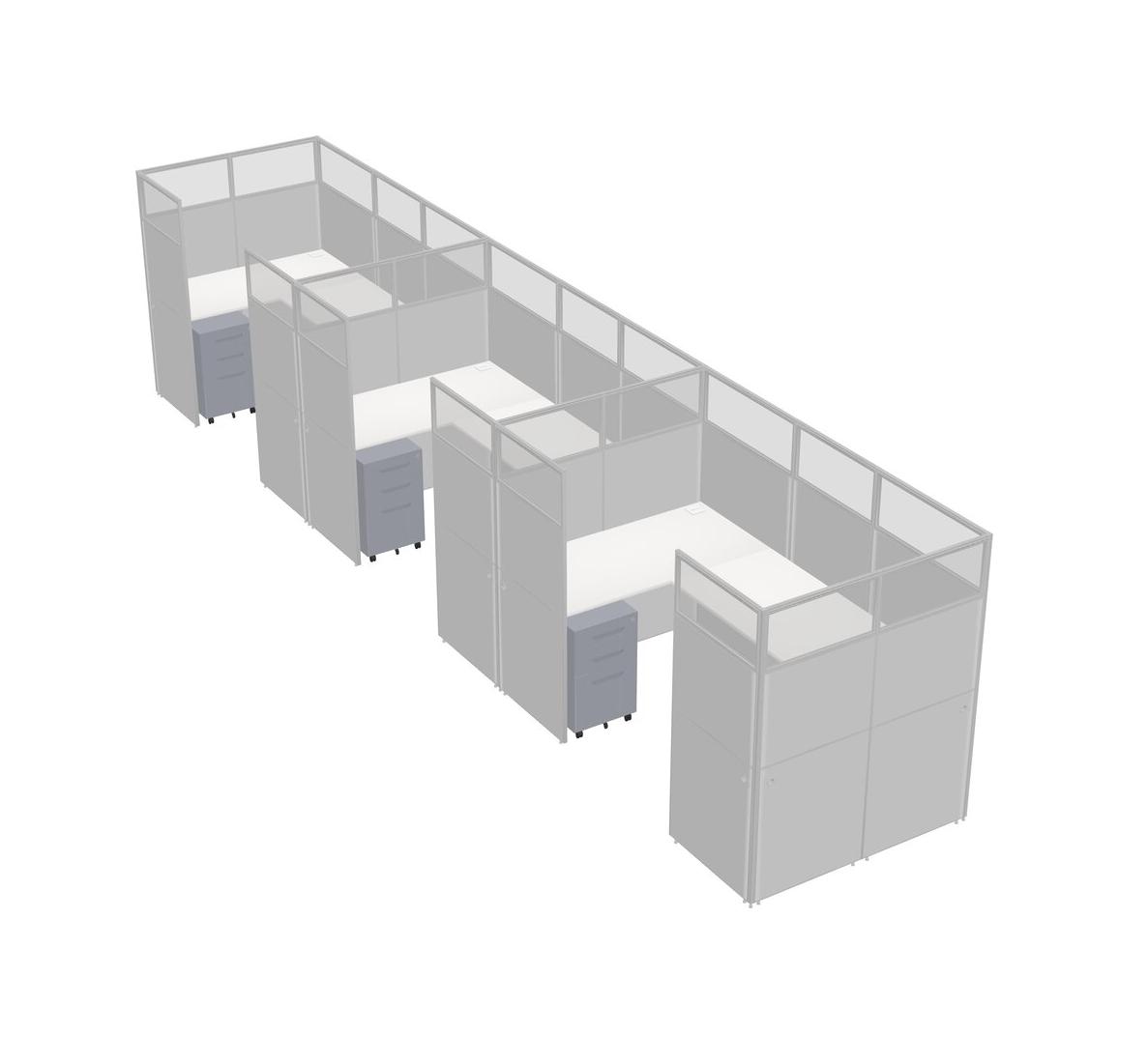 Système De Panneaux En U Blanc Pour 3 Personnes + Tiroirs Mobiles En Métal Pour 3 Utilisateur(s)