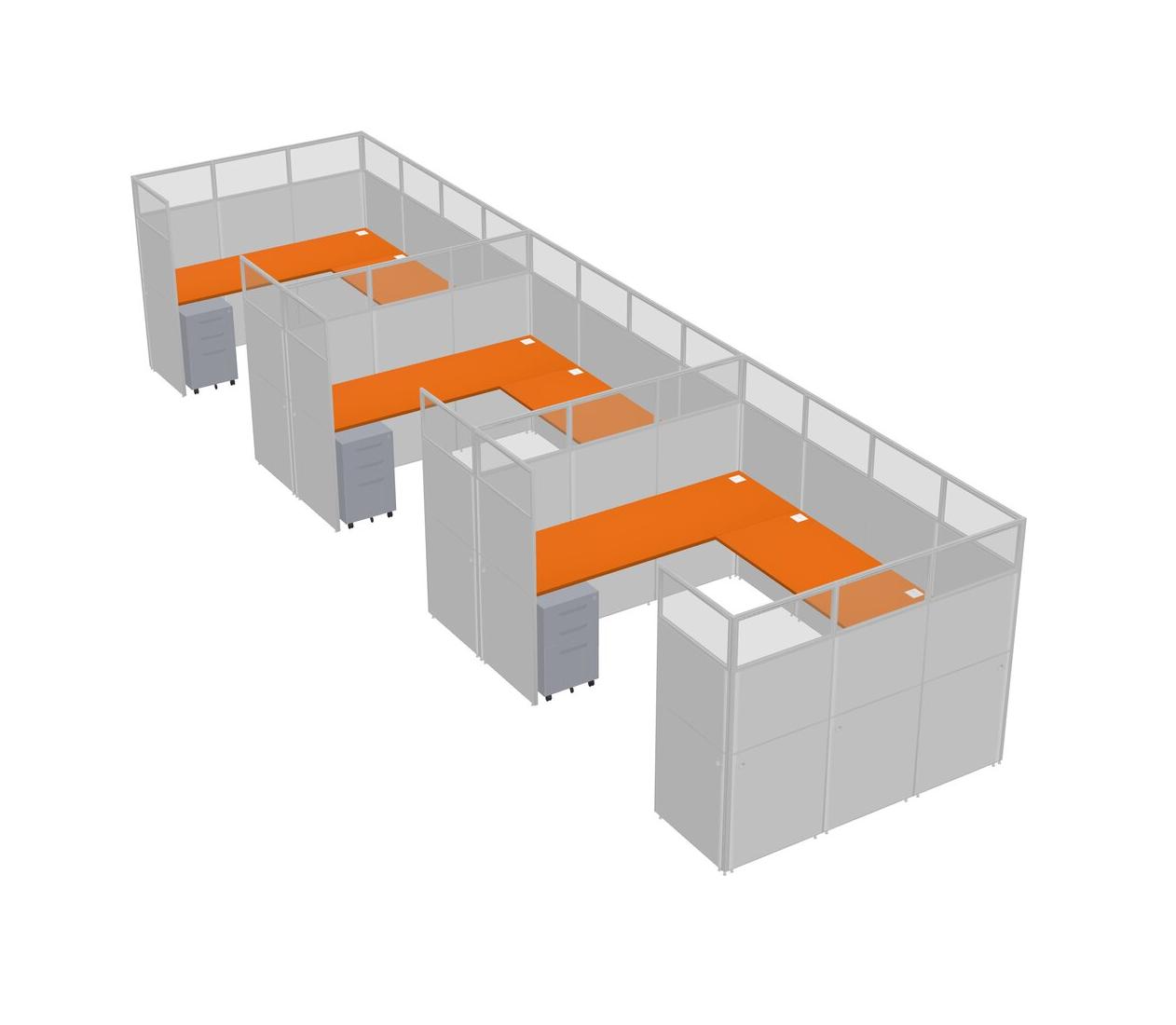 Système De Panneaux En U Orange Pour 3 Personnes + Tiroirs Mobiles En Métal Pour 3 Utilisateur(s)