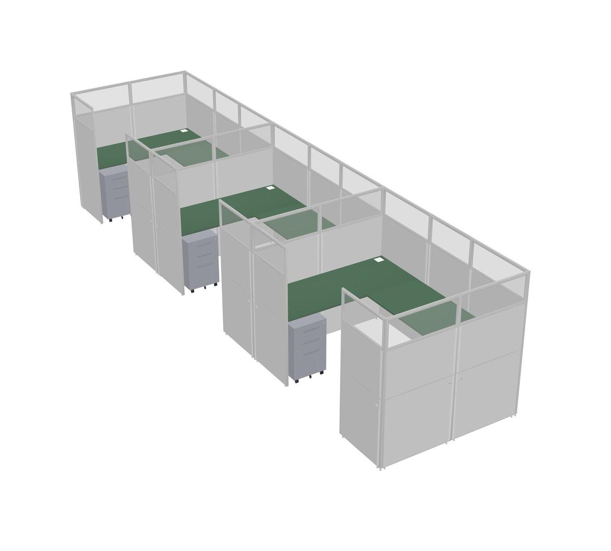 Système De Panneaux En U Vert Pour 3 Personnes + Tiroirs Mobiles En Métal Pour 3 Utilisateur(s)