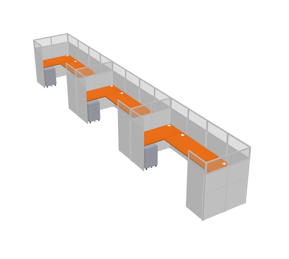 Système De Panneaux En U Orange Pour 3 Personnes + Tiroirs Mobiles En Métal Pour 3 Utilisateur(s)