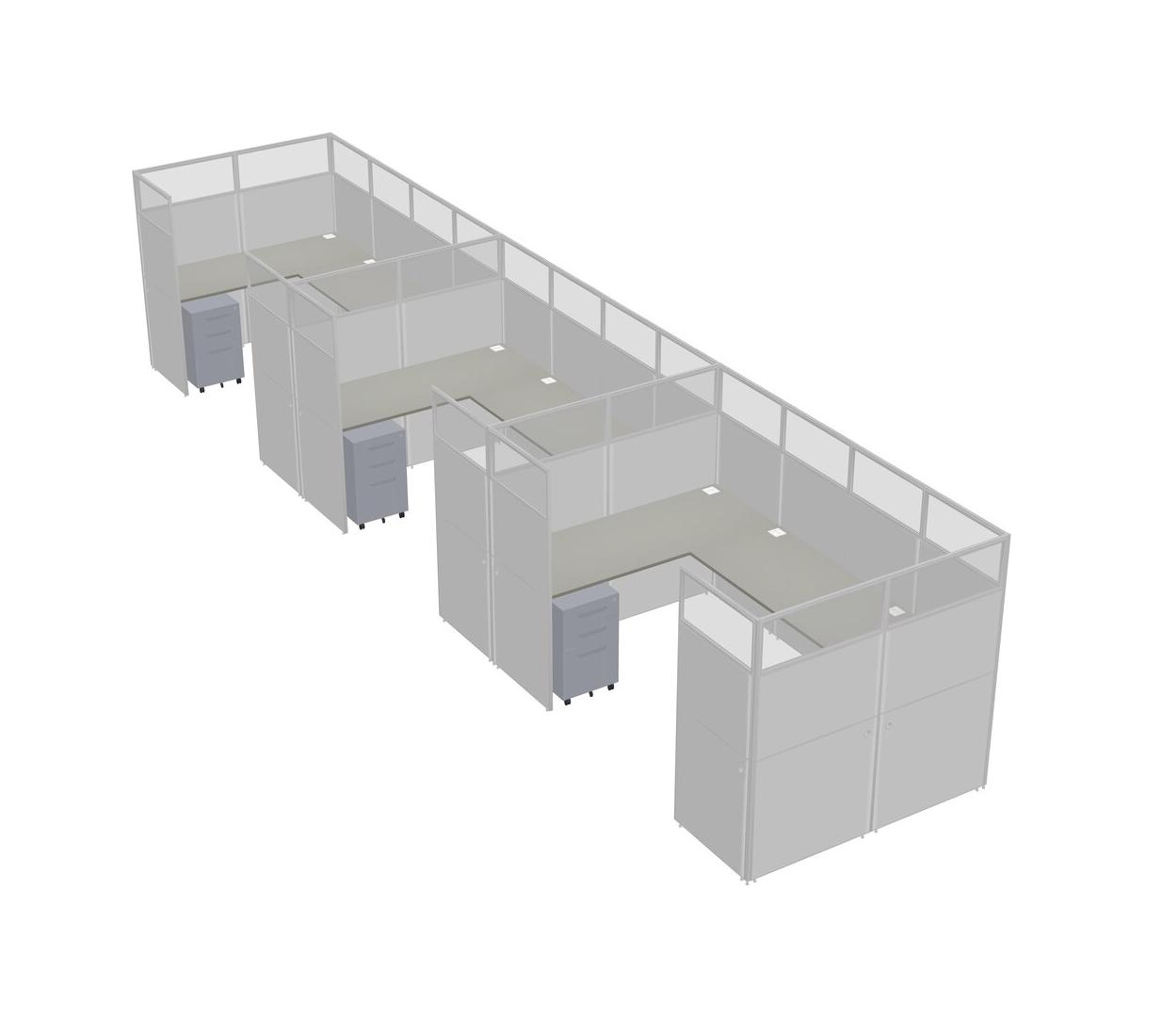 Système De Panneaux En U Grey Shadows Pour 3 Personnes + Tiroirs Mobiles En Métal Pour 3 Utilisateur(s)