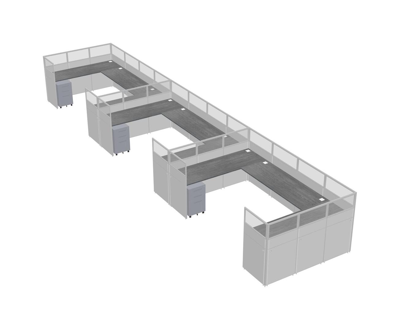 Système De Panneaux En U Gris Pour 3 Personnes + Tiroirs Mobiles En Métal Pour 3 Utilisateur(s)