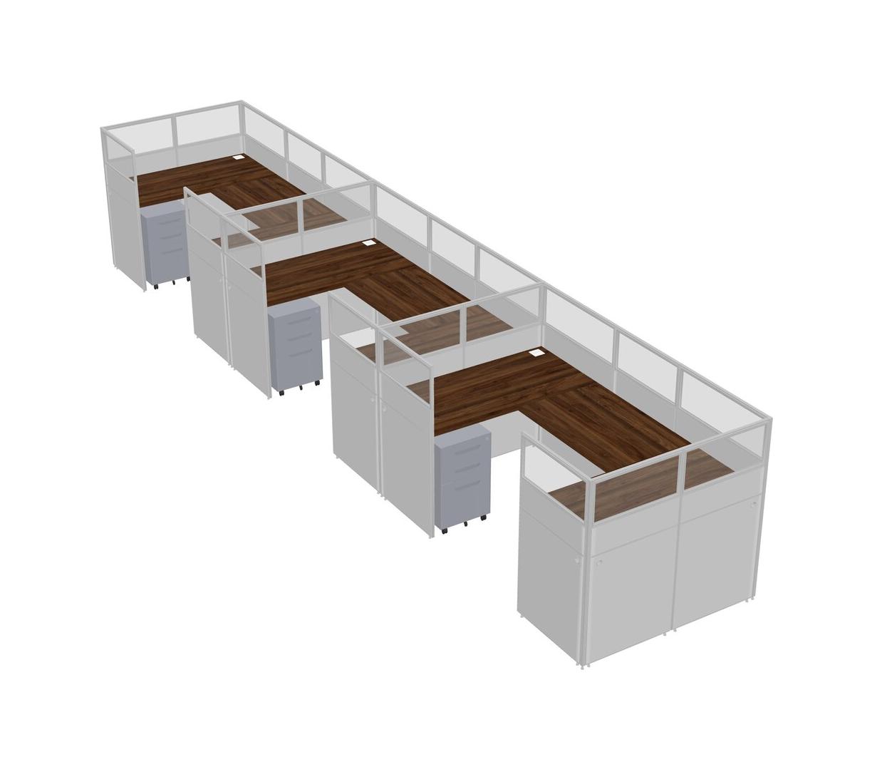 Système De Panneaux En U En Noyer Columbia Pour 3 Personnes + Tiroirs Mobiles En Métal Pour 3 Utilisateur(s)