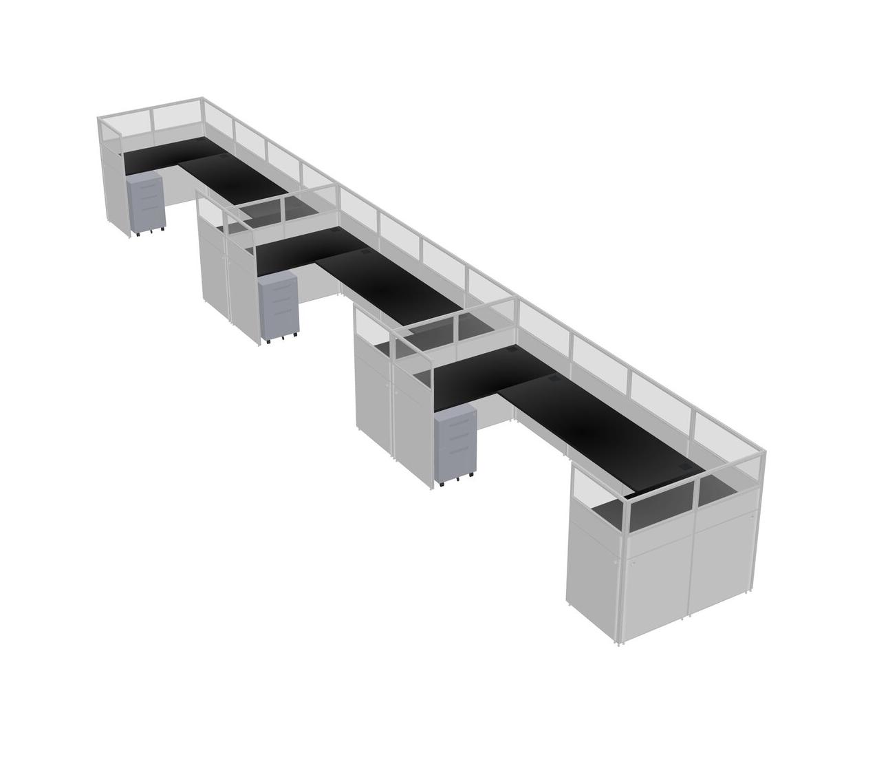 Système De Panneaux En U Noir Pour 3 Personnes + Tiroirs Mobiles En Métal Pour 3 Utilisateur(s)