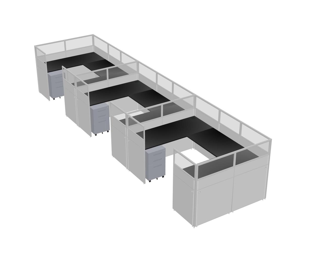 Système De Panneaux En U Noir Pour 3 Personnes + Tiroirs Mobiles En Métal Pour 3 Utilisateur(s)