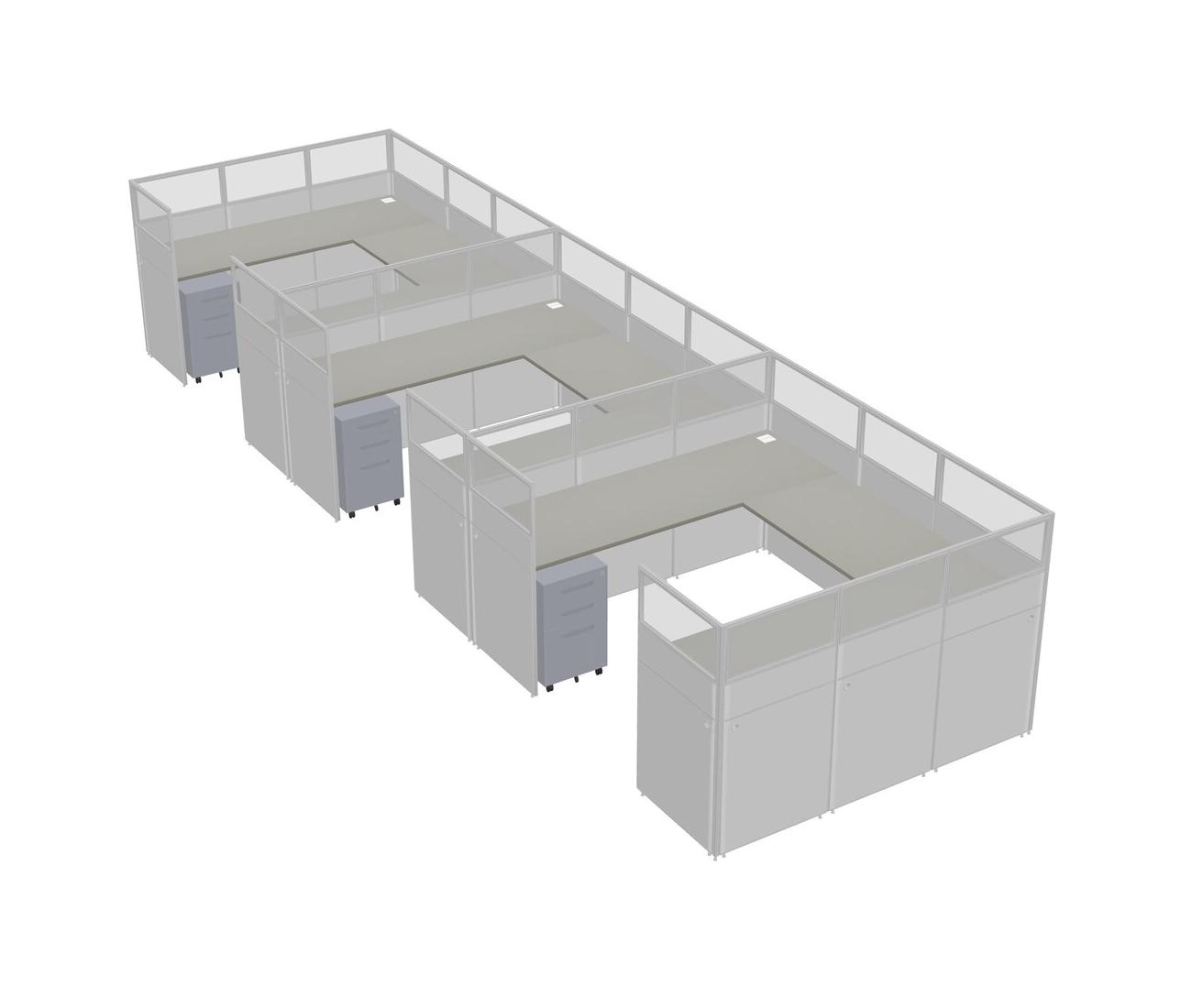 Système De Panneaux En U Grey Shadows Pour 3 Personnes + Tiroirs Mobiles En Métal Pour 3 Utilisateur(s)