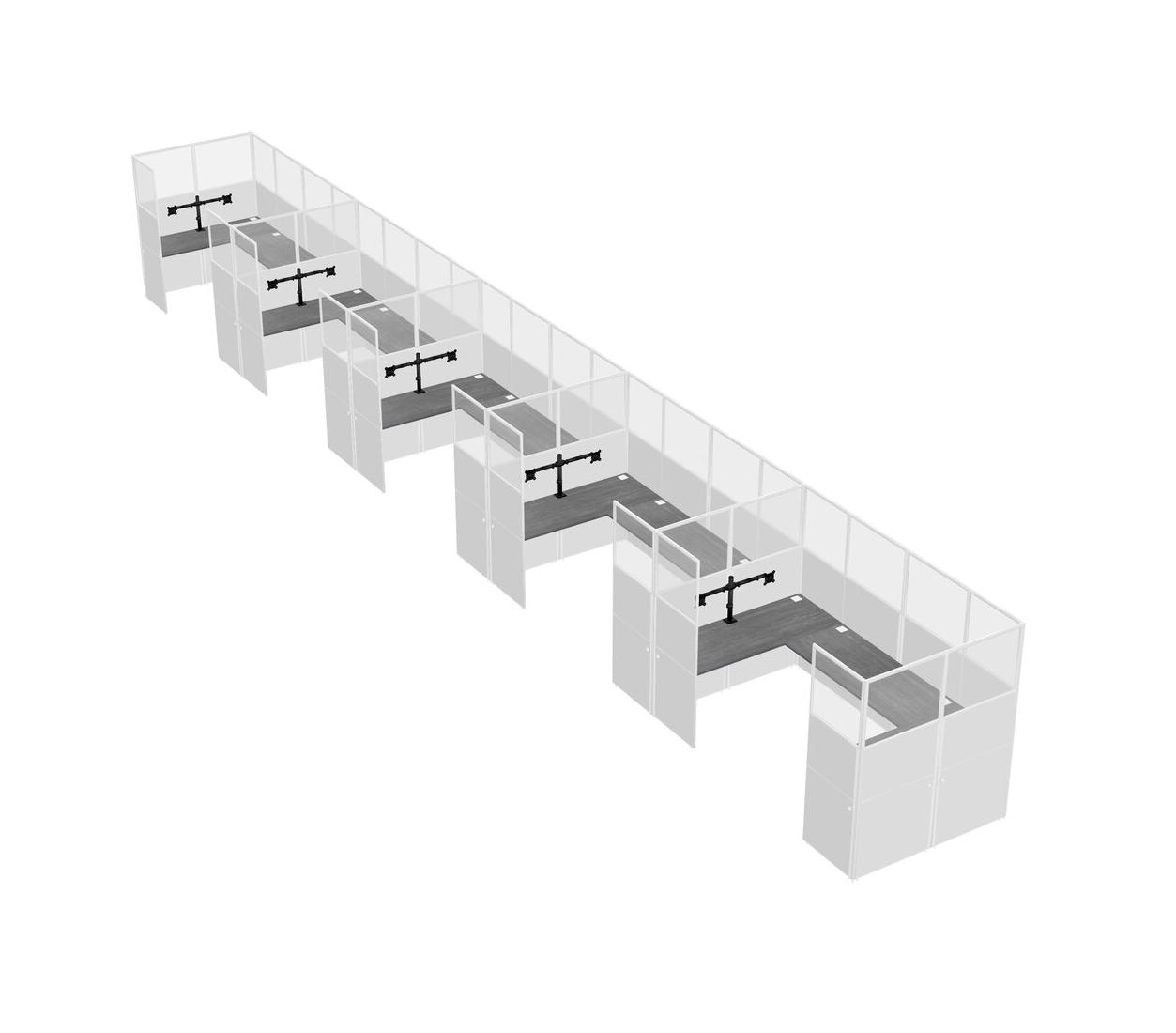 Système De Panneaux En U Gris Pour 5 Personnes + Bras De Moniteur (bras Doubles) Pour 5 Utilisateur(s)