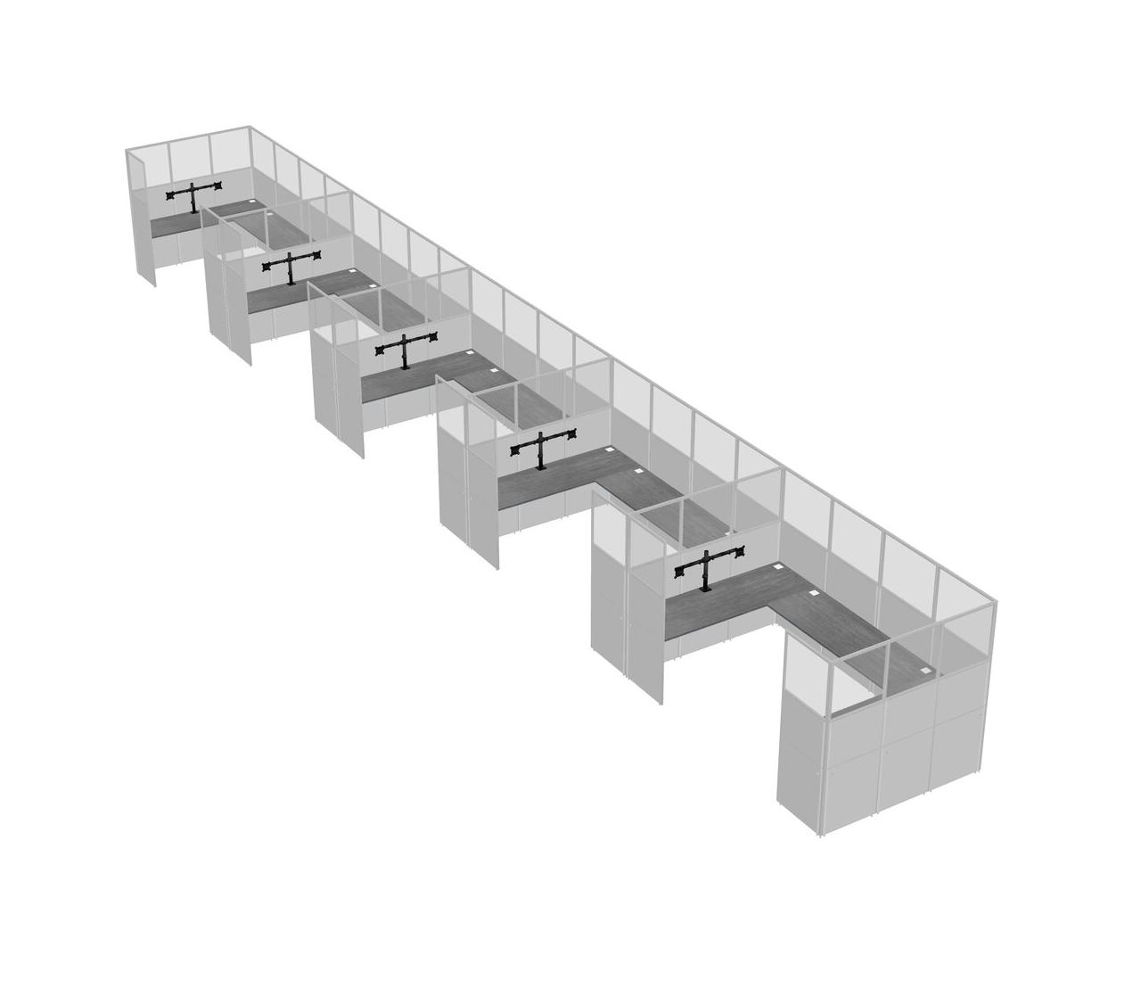 Système De Panneaux En U Gris Pour 5 Personnes + Bras De Moniteur (bras Doubles) Pour 5 Utilisateur(s)