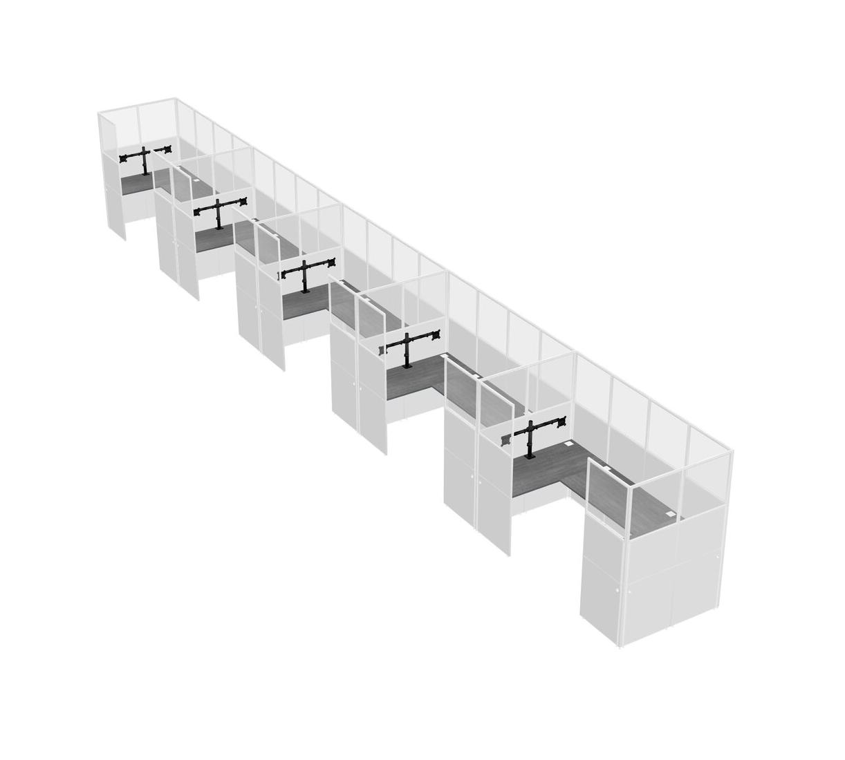 Système De Panneaux En U Gris Pour 5 Personnes + Bras De Moniteur (bras Doubles) Pour 5 Utilisateur(s)