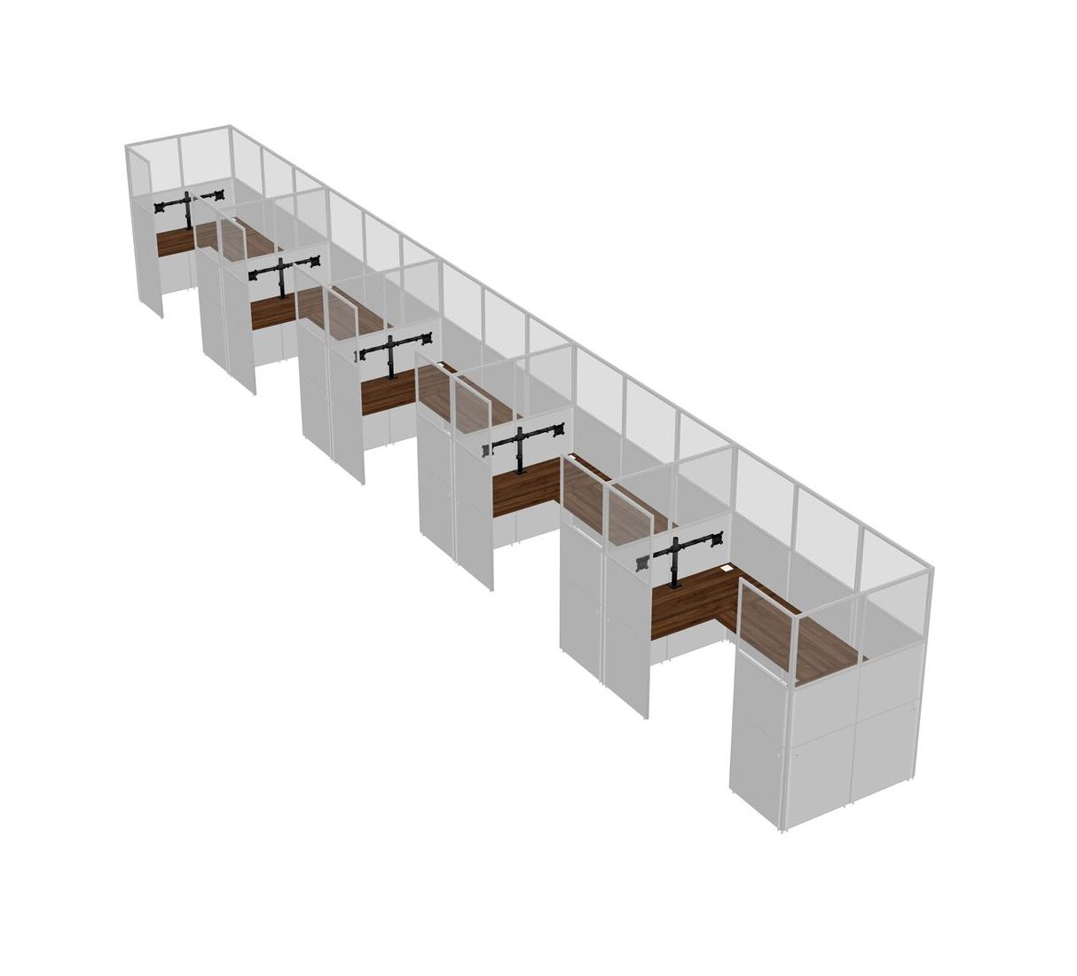 Système De Panneaux En U En Noyer Columbia Pour 5 Personnes + Bras De Moniteur (bras Doubles) Pour 5 Utilisateur(s)
