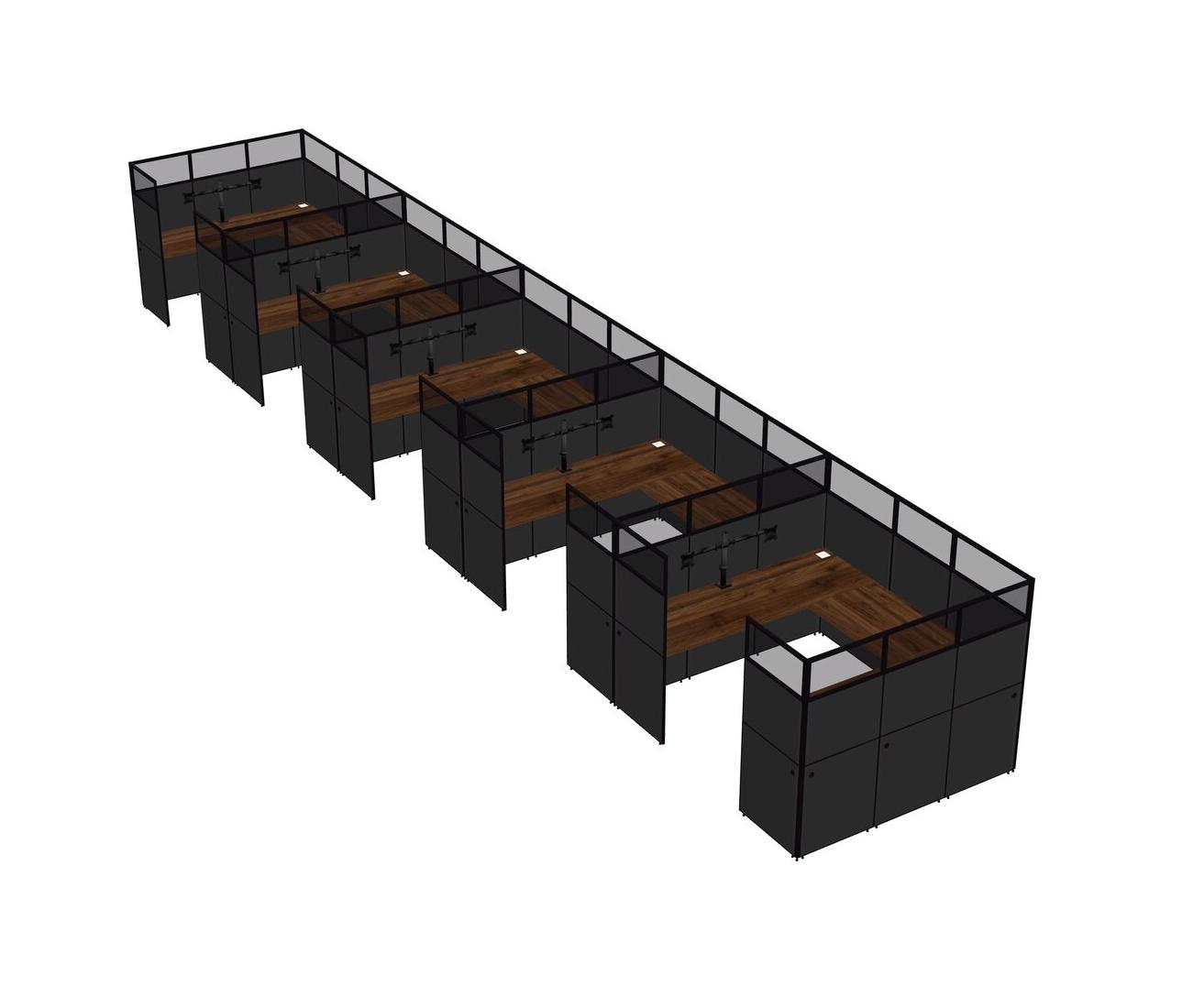 Système De Panneaux En U En Noyer Columbia Pour 5 Personnes + Bras De Moniteur (bras Doubles) Pour 5 Utilisateur(s)