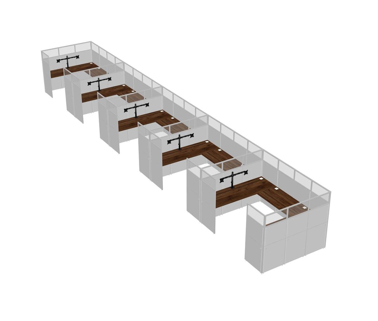 Système De Panneaux En U En Noyer Columbia Pour 5 Personnes + Bras De Moniteur (bras Doubles) Pour 5 Utilisateur(s)