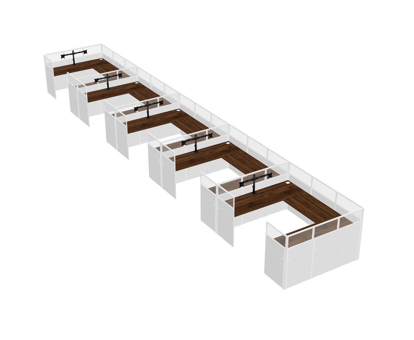 Système De Panneaux En U En Noyer Columbia Pour 5 Personnes + Bras De Moniteur (bras Doubles) Pour 5 Utilisateur(s)