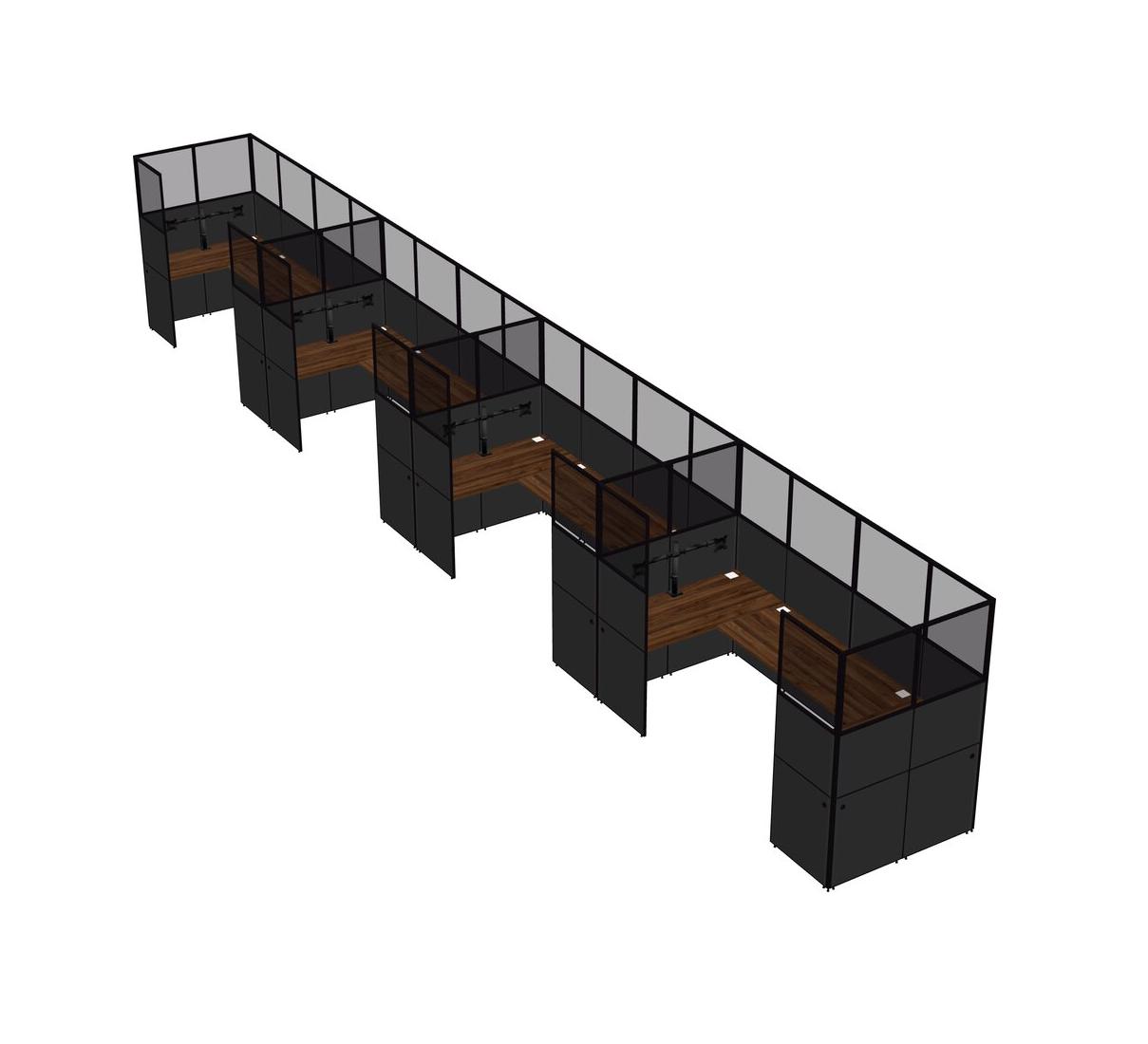Système De Panneaux En U En Noyer Columbia Pour 4 Personnes + Bras De Moniteur (bras Doubles) Pour 4 Utilisateur(s)