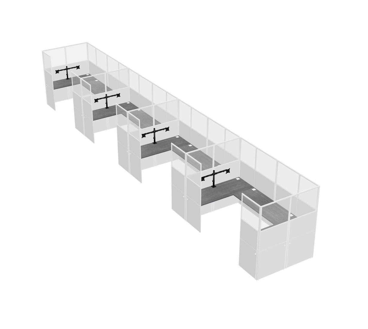 Système De Panneaux En U Gris Pour 4 Personnes + Bras De Moniteur (bras Doubles) Pour 4 Utilisateur(s)