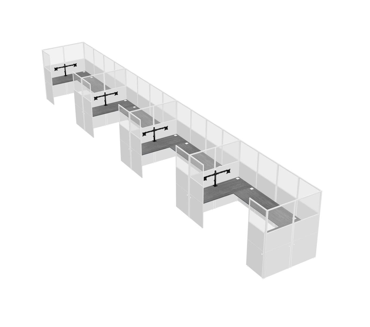 Système De Panneaux En U Gris Pour 4 Personnes + Bras De Moniteur (bras Doubles) Pour 4 Utilisateur(s)