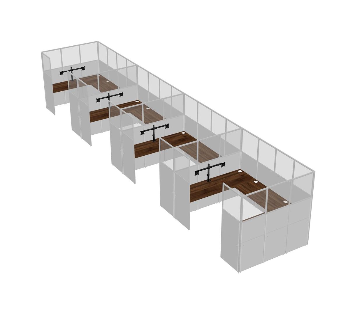 Système De Panneaux En U En Noyer Columbia Pour 4 Personnes + Bras De Moniteur (bras Doubles) Pour 4 Utilisateur(s)