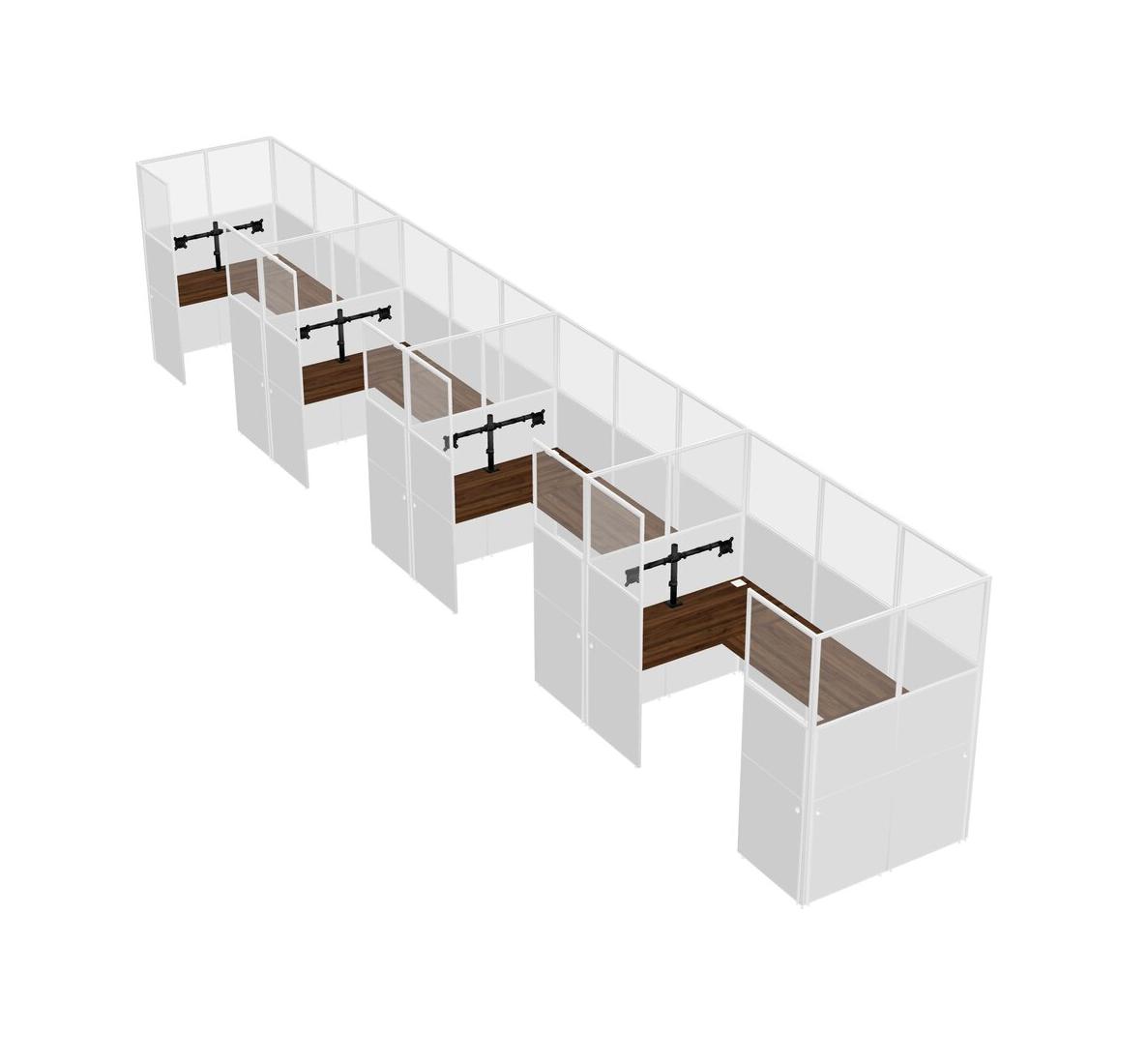 Système De Panneaux En U En Noyer Columbia Pour 4 Personnes + Bras De Moniteur (bras Doubles) Pour 4 Utilisateur(s)