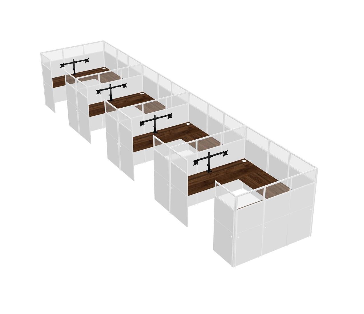 Système De Panneaux En U En Noyer Columbia Pour 4 Personnes + Bras De Moniteur (bras Doubles) Pour 4 Utilisateur(s)