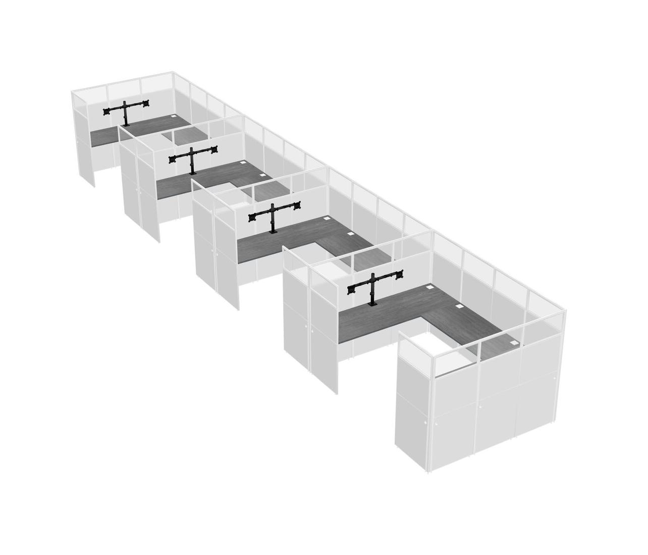 Système De Panneaux En U Gris Pour 4 Personnes + Bras De Moniteur (bras Doubles) Pour 4 Utilisateur(s)