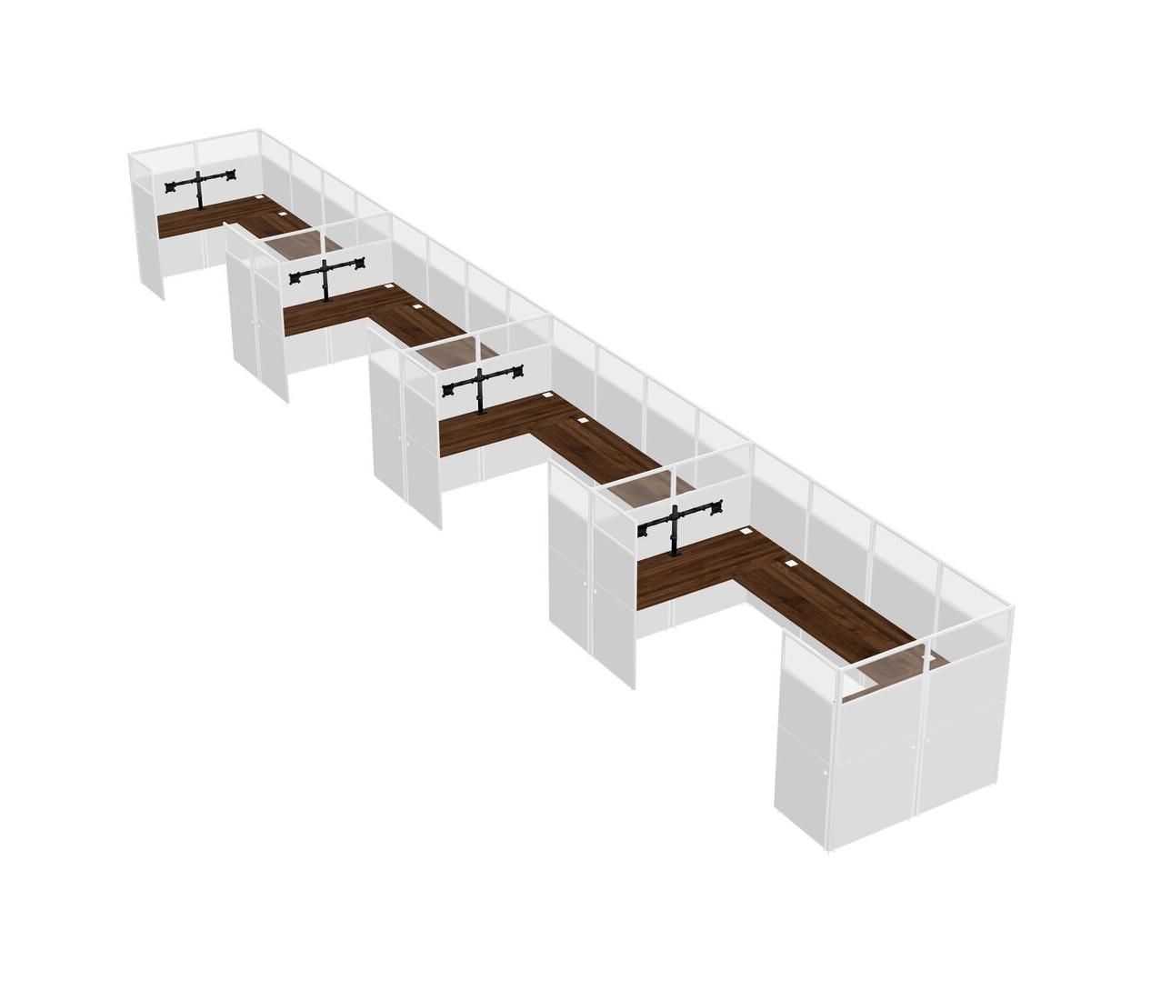 Système De Panneaux En U En Noyer Columbia Pour 4 Personnes + Bras De Moniteur (bras Doubles) Pour 4 Utilisateur(s)