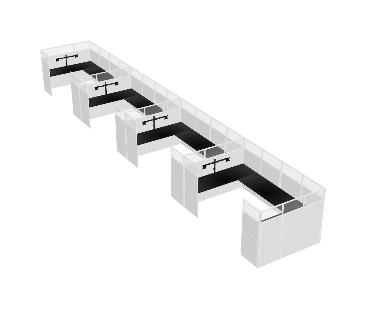 Système De Panneau En U Noir Pour 4 Personnes + Bras De Moniteur (bras Doubles) Pour 4 Utilisateur(s)