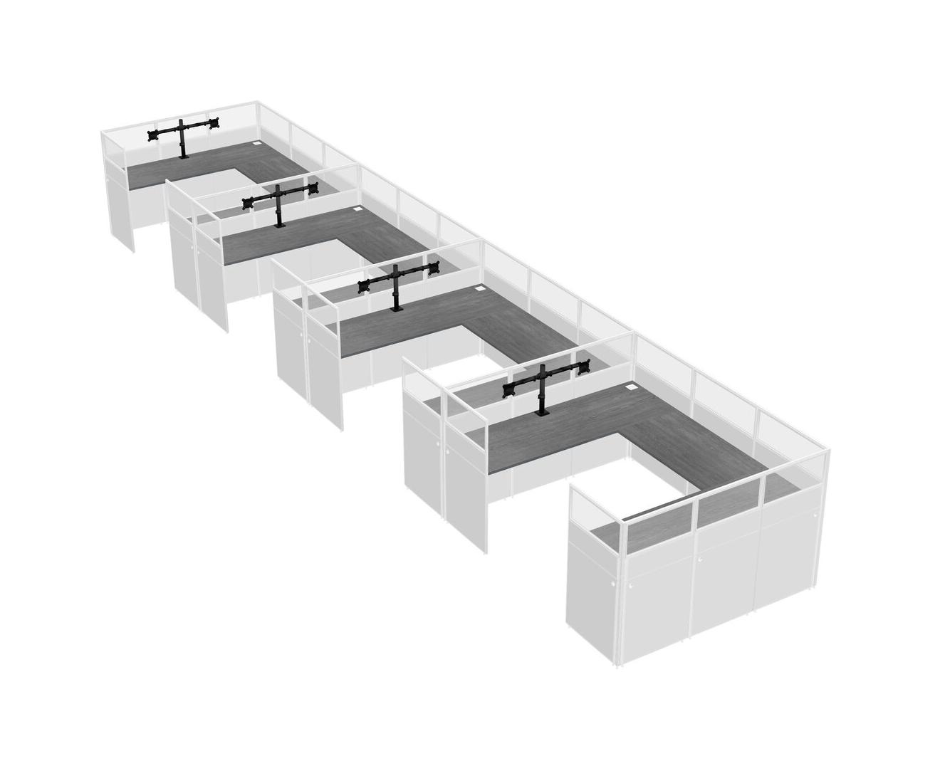 Système De Panneaux En U Gris Pour 4 Personnes + Bras De Moniteur (bras Doubles) Pour 4 Utilisateur(s)