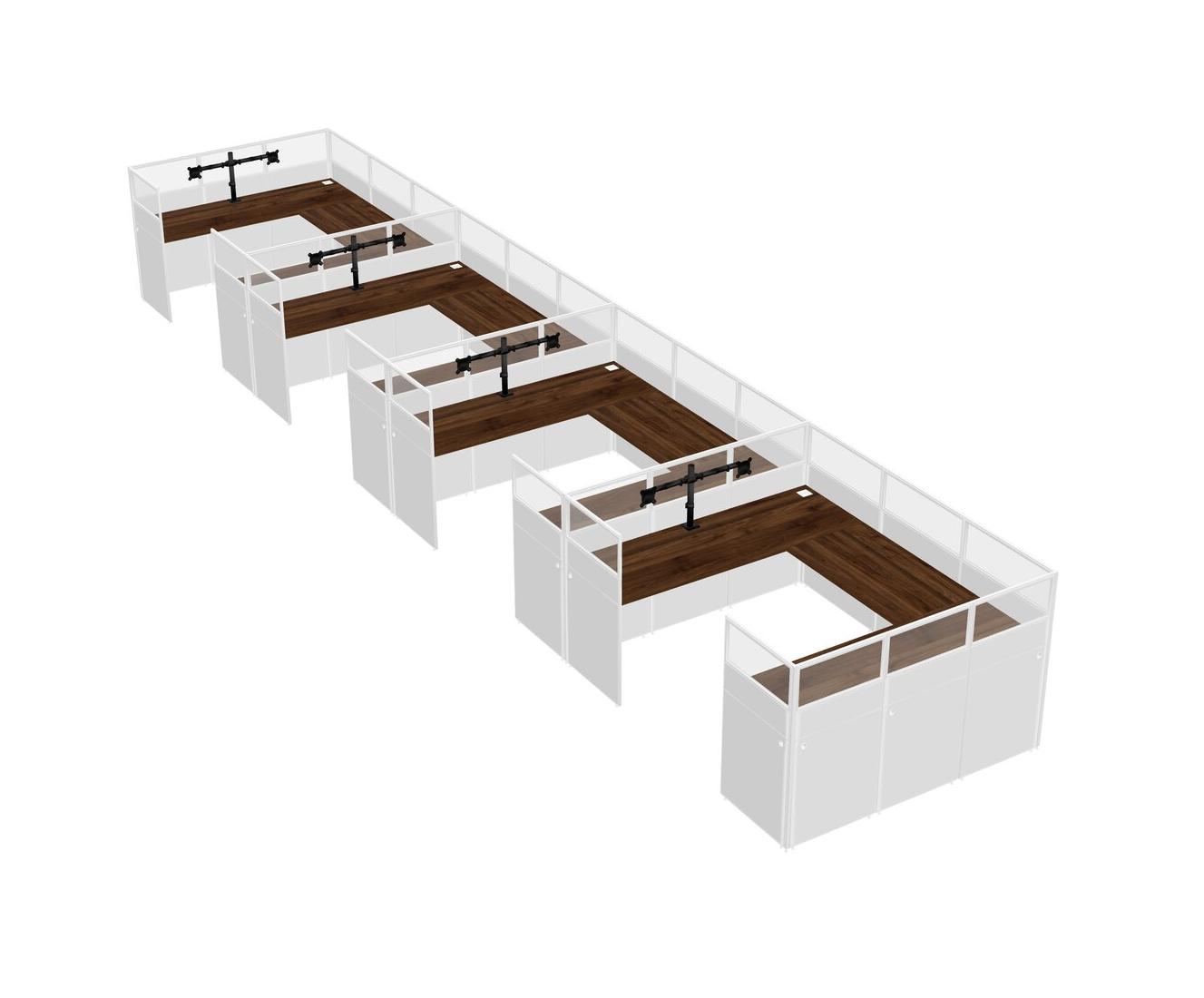 Système De Panneaux En U En Noyer Columbia Pour 4 Personnes + Bras De Moniteur (bras Doubles) Pour 4 Utilisateur(s)