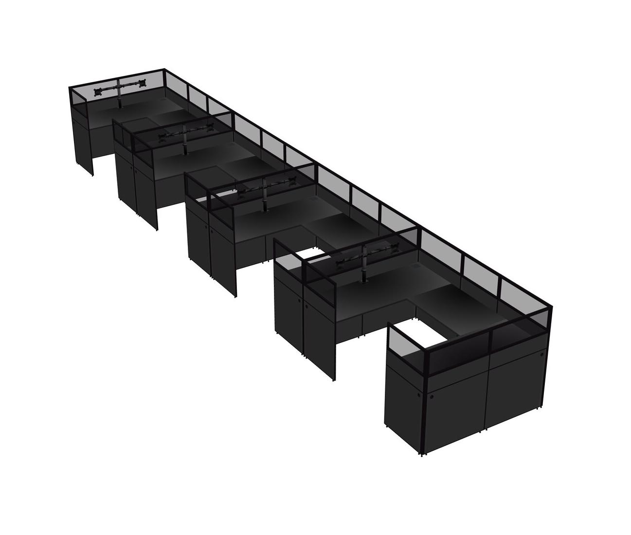 Système De Panneau En U Noir Pour 4 Personnes + Bras De Moniteur (bras Doubles) Pour 4 Utilisateur(s)