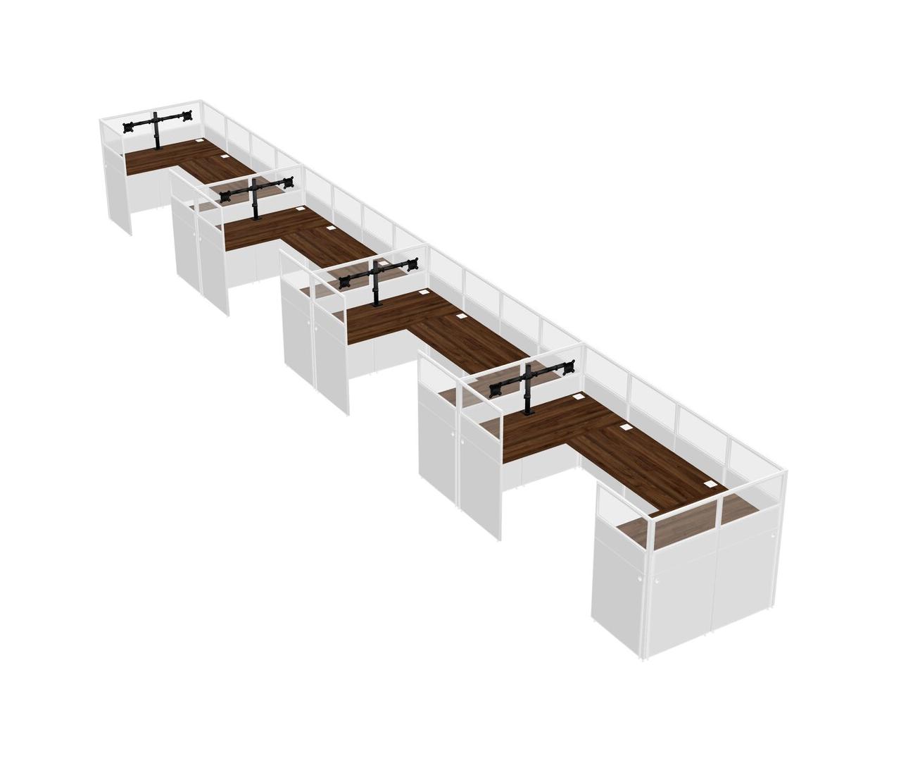 Système De Panneaux En U En Noyer Columbia Pour 4 Personnes + Bras De Moniteur (bras Doubles) Pour 4 Utilisateur(s)