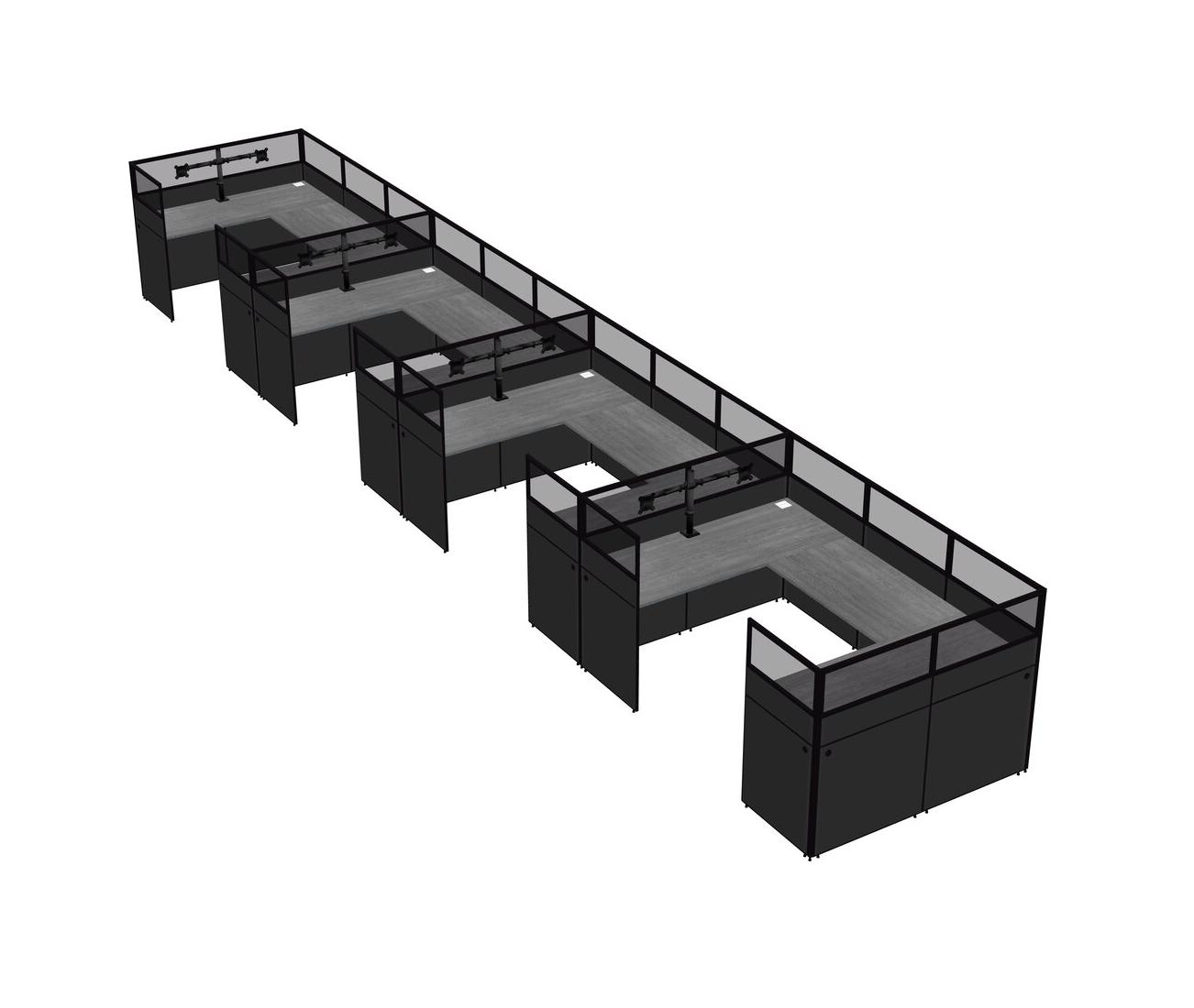Système De Panneaux En U Gris Pour 4 Personnes + Bras De Moniteur (bras Doubles) Pour 4 Utilisateur(s)