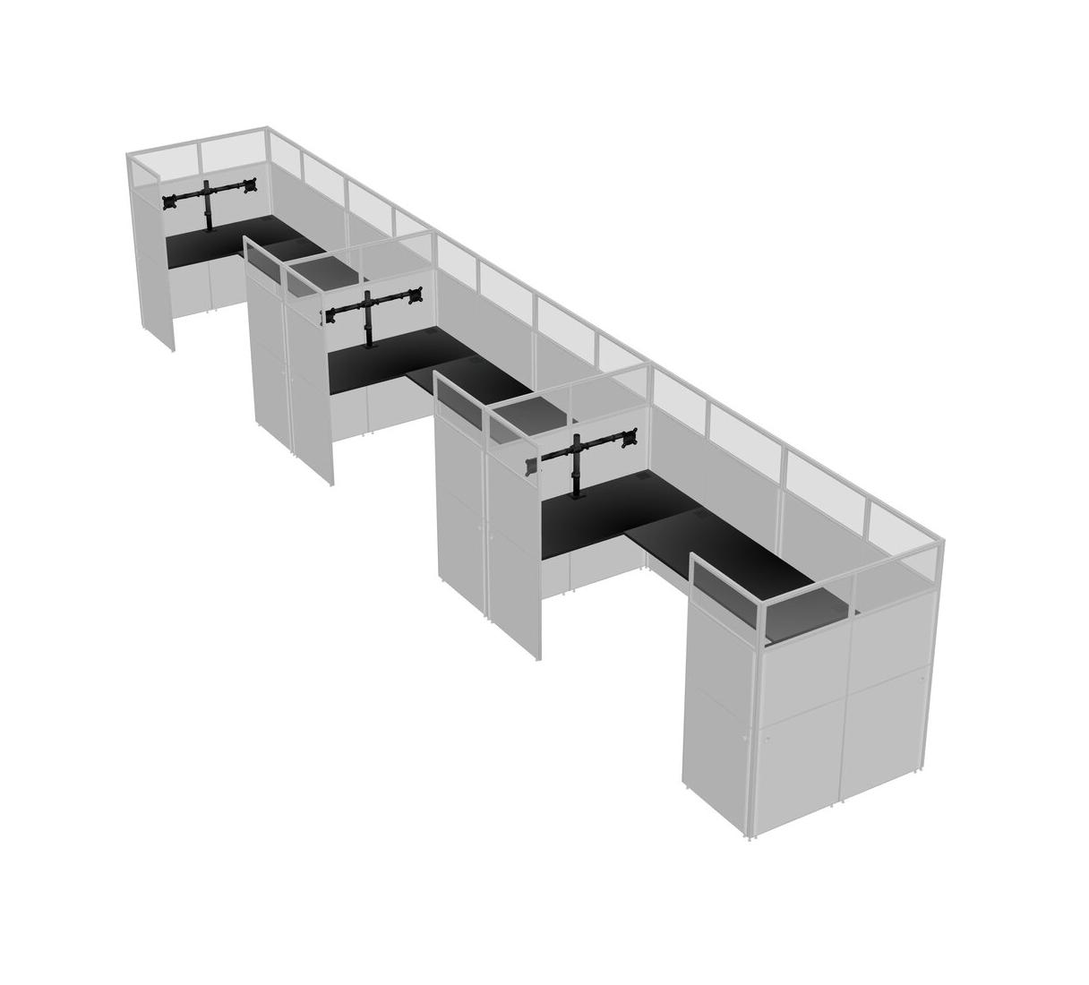 Système De Panneau En U Noir Pour 3 Personnes + Bras De Moniteur (bras Doubles) Pour 3 Utilisateur(s)