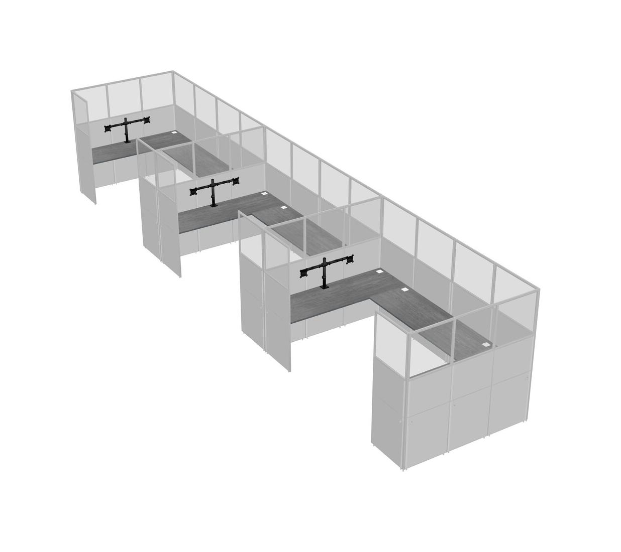 Système De Panneaux En U Gris Pour 3 Personnes + Bras De Moniteur (bras Doubles) Pour 3 Utilisateur(s)