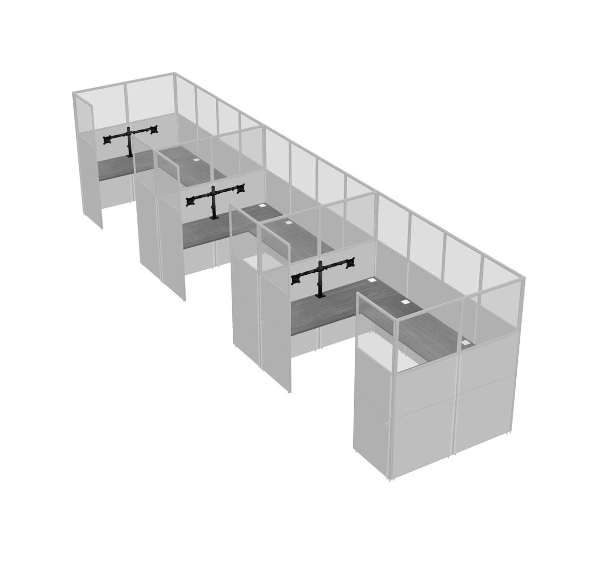 Système De Panneaux En U Gris Pour 3 Personnes + Bras De Moniteur (bras Doubles) Pour 3 Utilisateur(s)