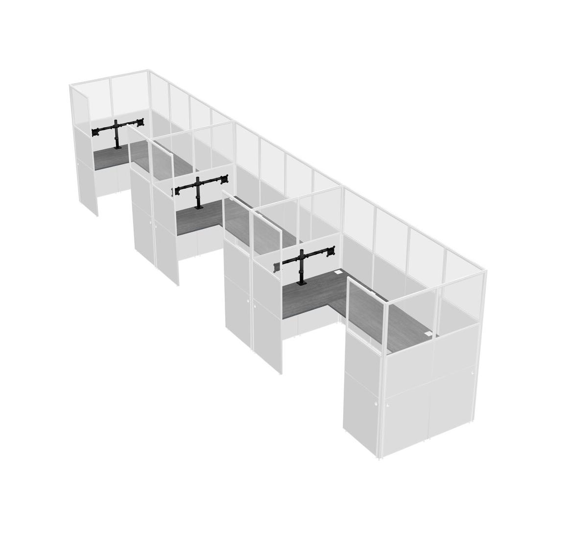 Système De Panneaux En U Gris Pour 3 Personnes + Bras De Moniteur (bras Doubles) Pour 3 Utilisateur(s)