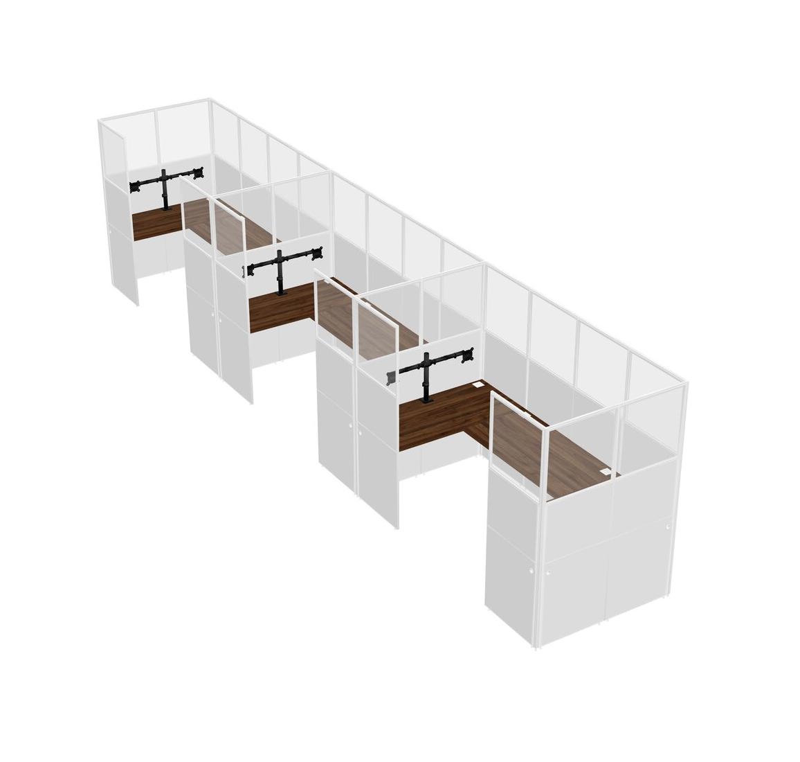 Système De Panneaux En U En Noyer Columbia Pour 3 Personnes + Bras De Moniteur (bras Doubles) Pour 3 Utilisateur(s)