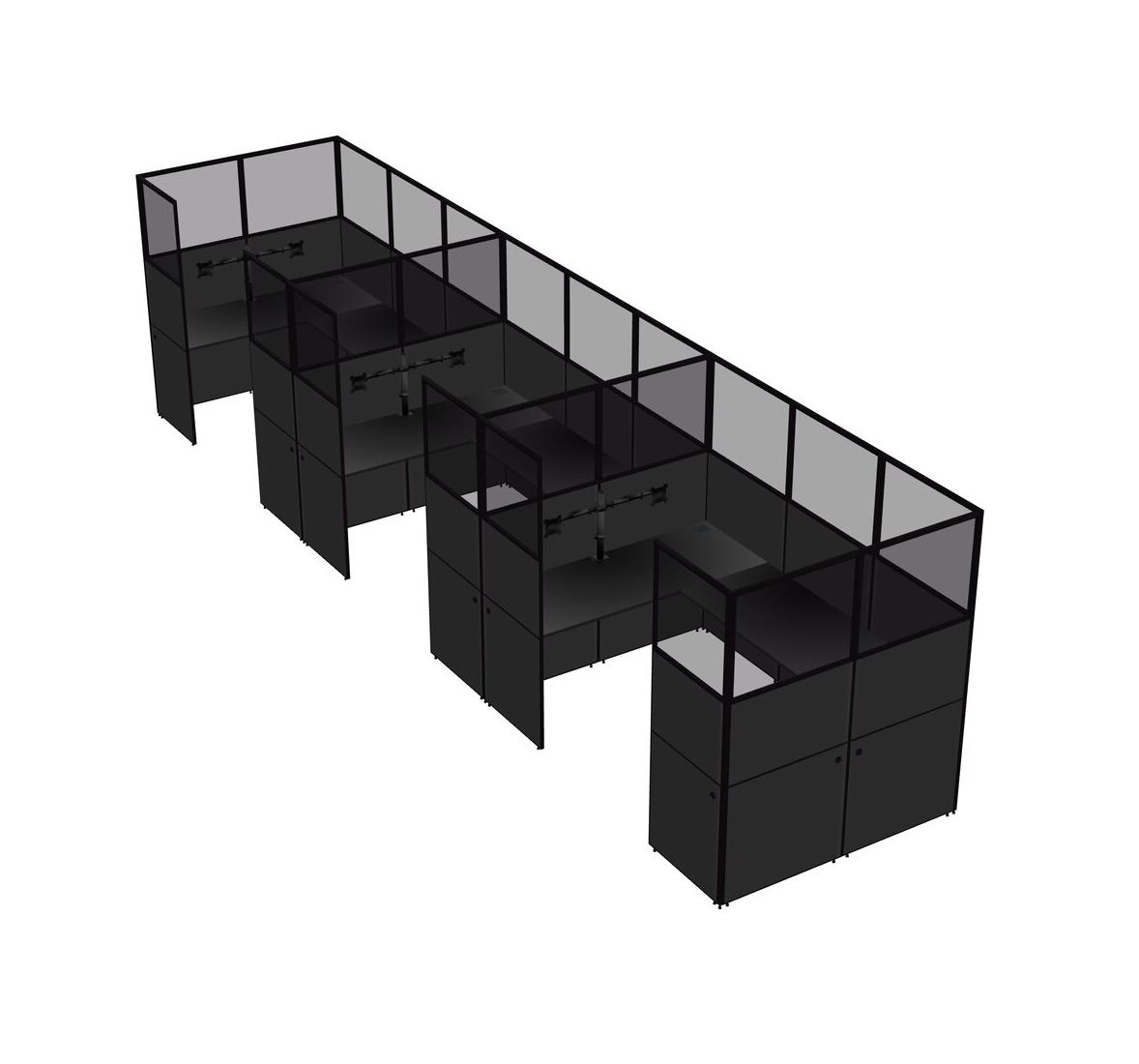 Système De Panneau En U Noir Pour 3 Personnes + Bras De Moniteur (bras Doubles) Pour 3 Utilisateur(s)