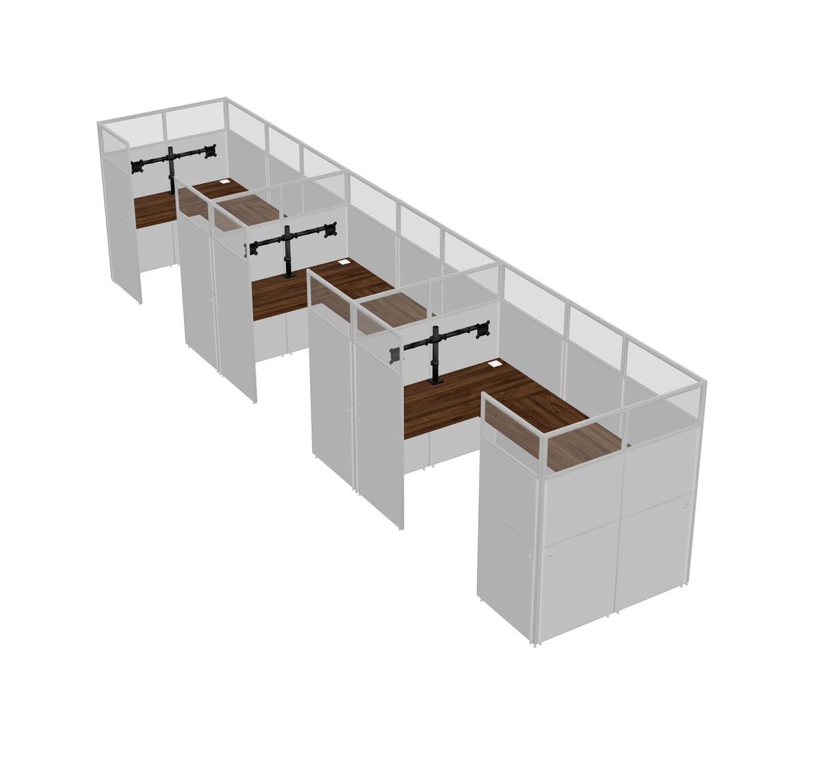 Système De Panneaux En U En Noyer Columbia Pour 3 Personnes + Bras De Moniteur (bras Doubles) Pour 3 Utilisateur(s)