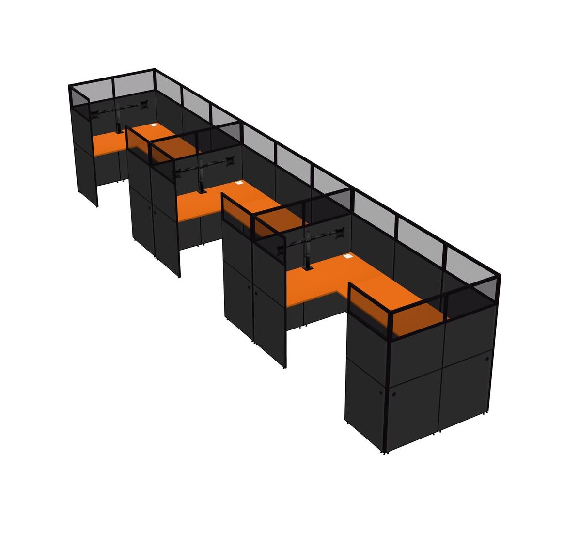 Système De Panneau En U Orange Pour 3 Personnes + Bras De Moniteur (bras Doubles) Pour 3 Utilisateur(s)